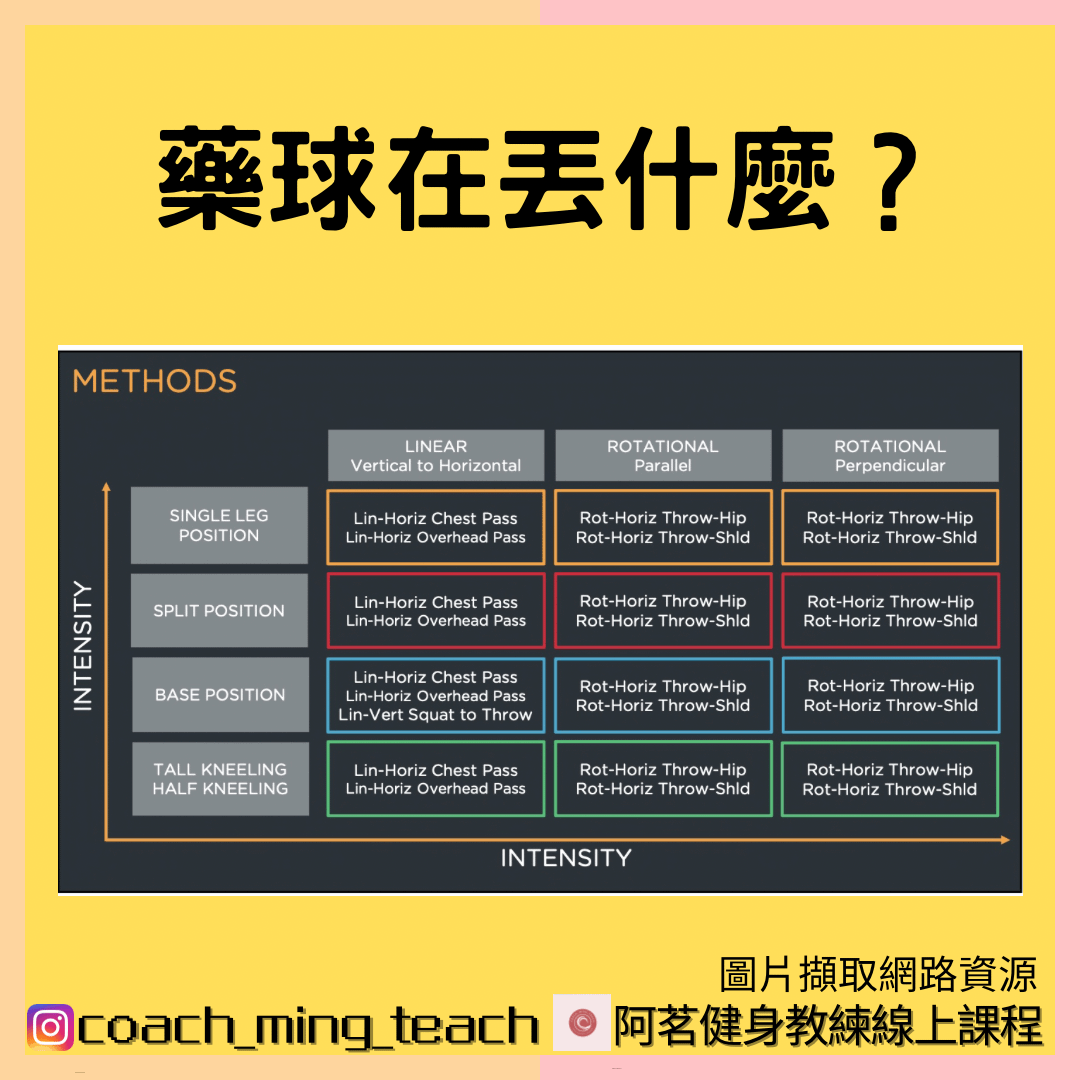 旋轉動作在健身動作常被忽略,不外乎是負荷無法太大,再來可以使用器材偏少,纜繩機、壺鈴、棒鈴、藥球,都比較偏向非主流工具,但是訓練旋轉好處多多,除了上述目標,也可練習到重心的轉移、視線不動只動身體的相對運動、體能訓練、好玩,所以並非一定是運動員或需要訓練爆發力才可以練習藥球